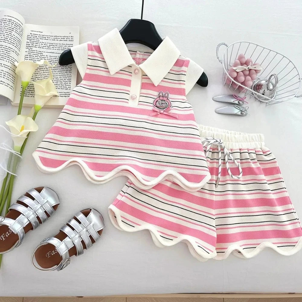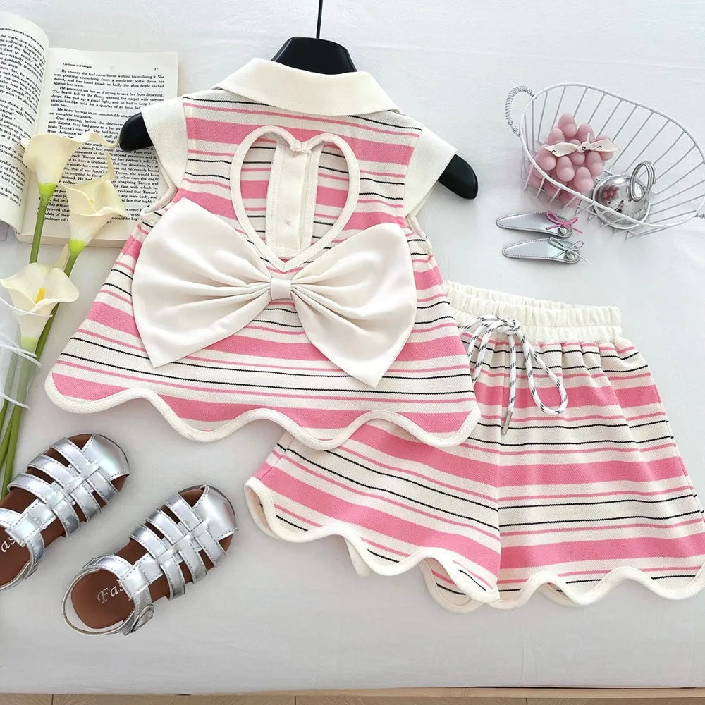 Hollow Heart Stripe Shorts Set