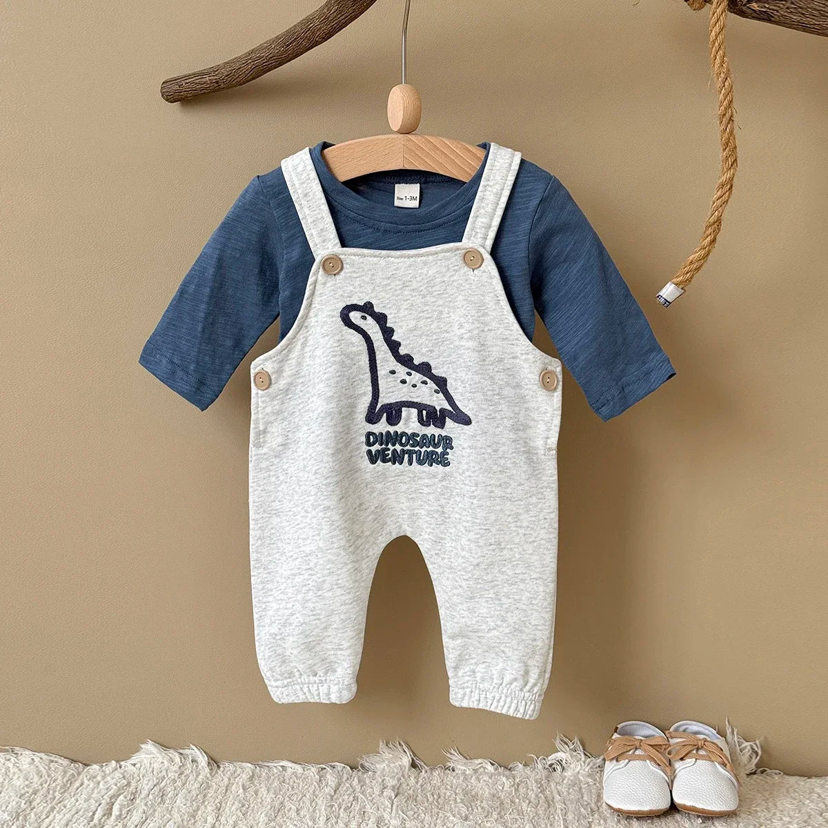 Embroidered Dinosaur Suspender Jumpsuit