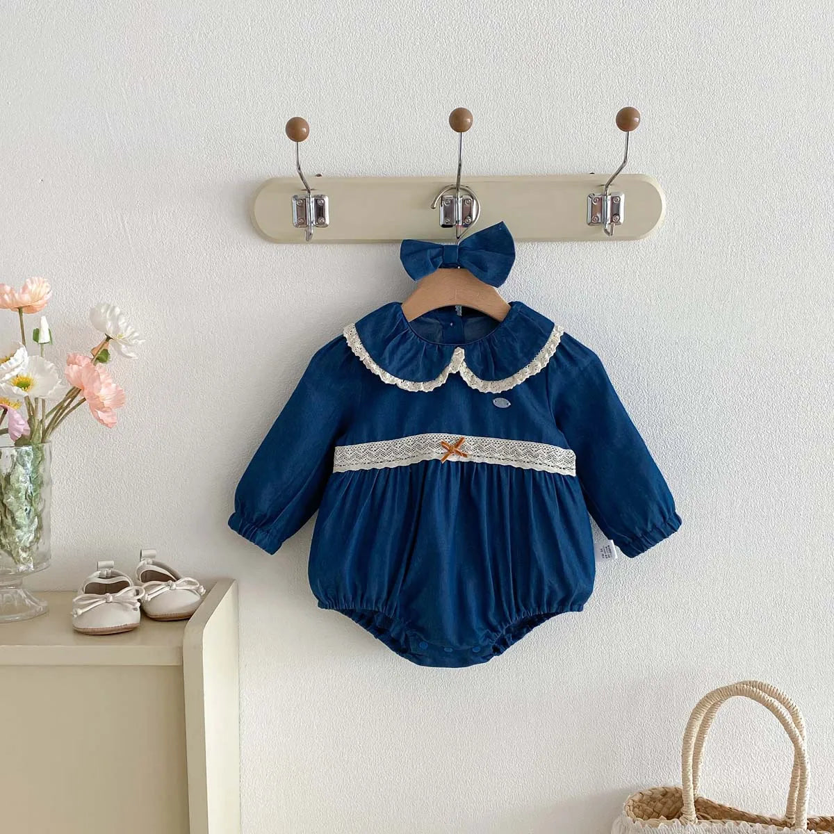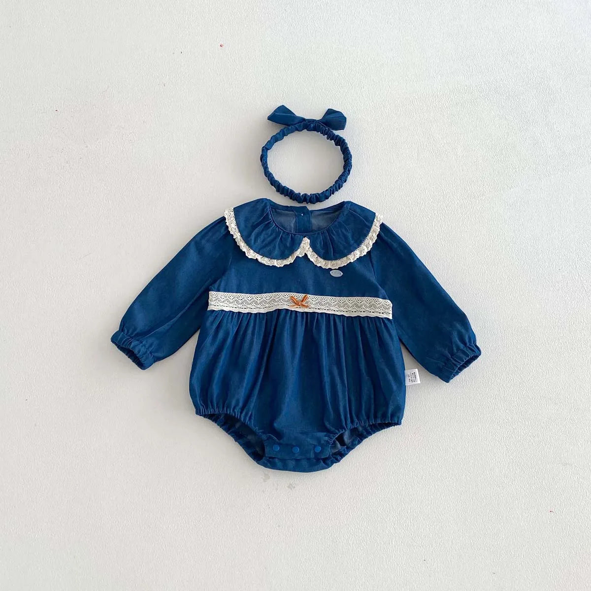 Lace Lapel Denim Romper