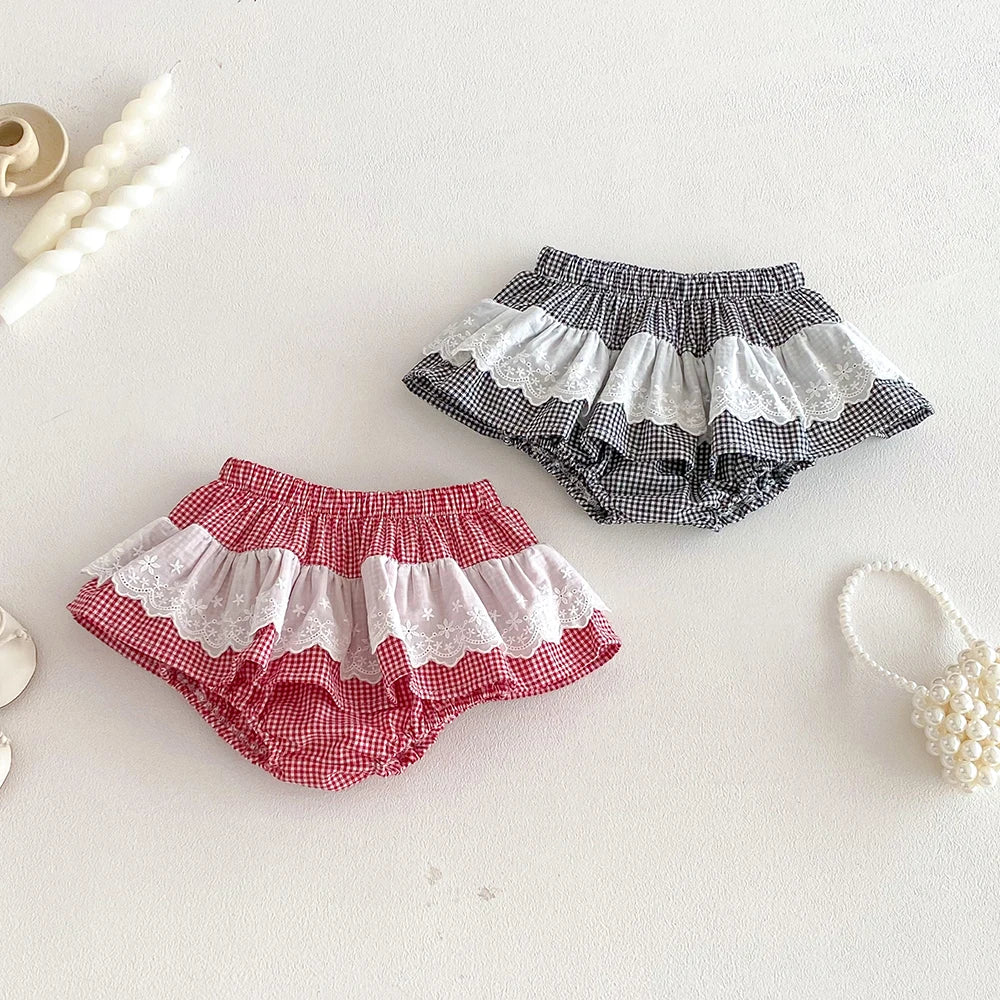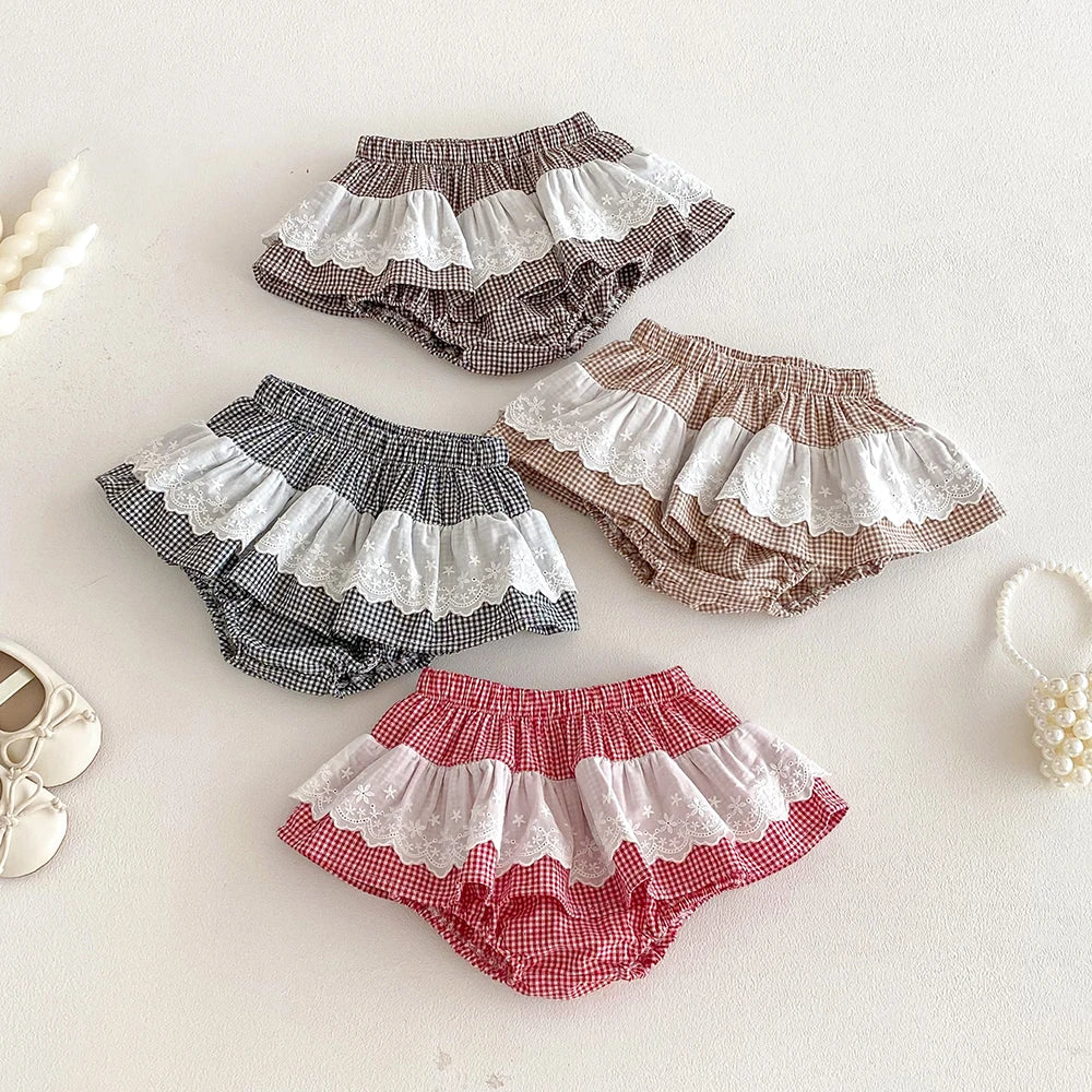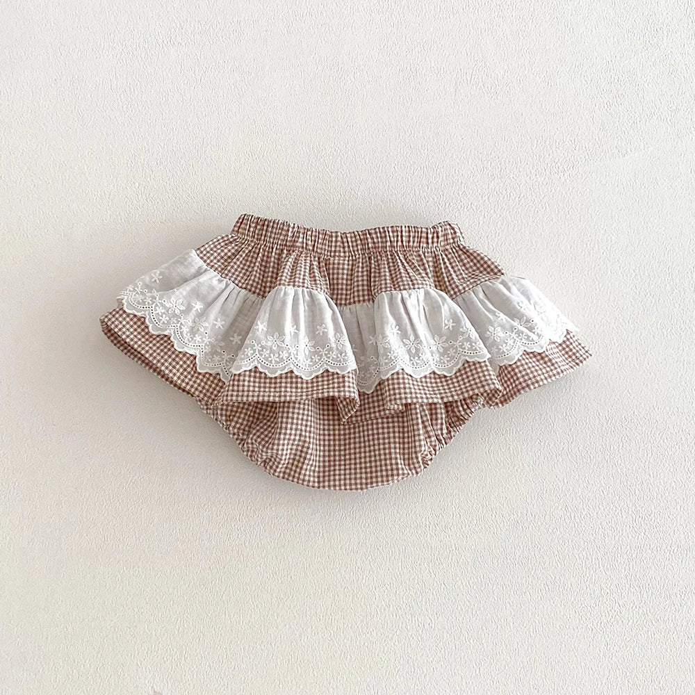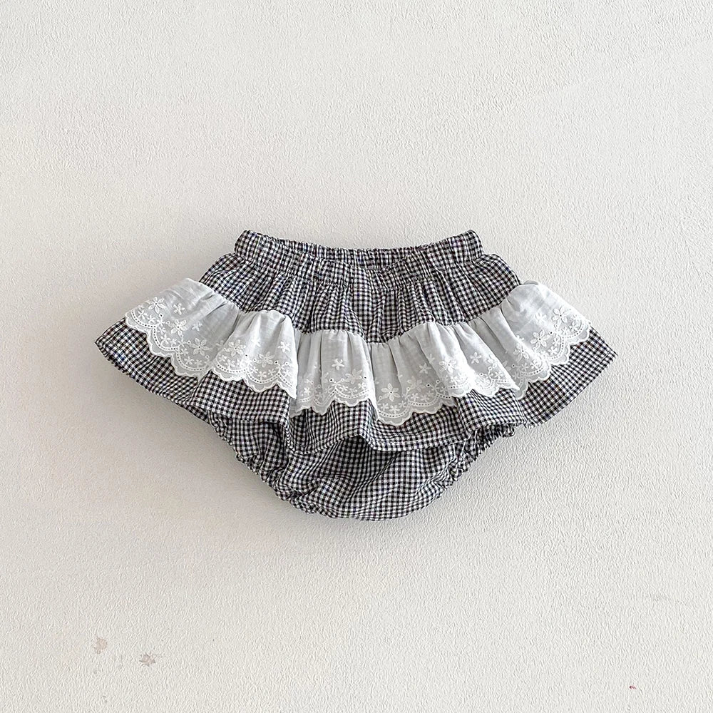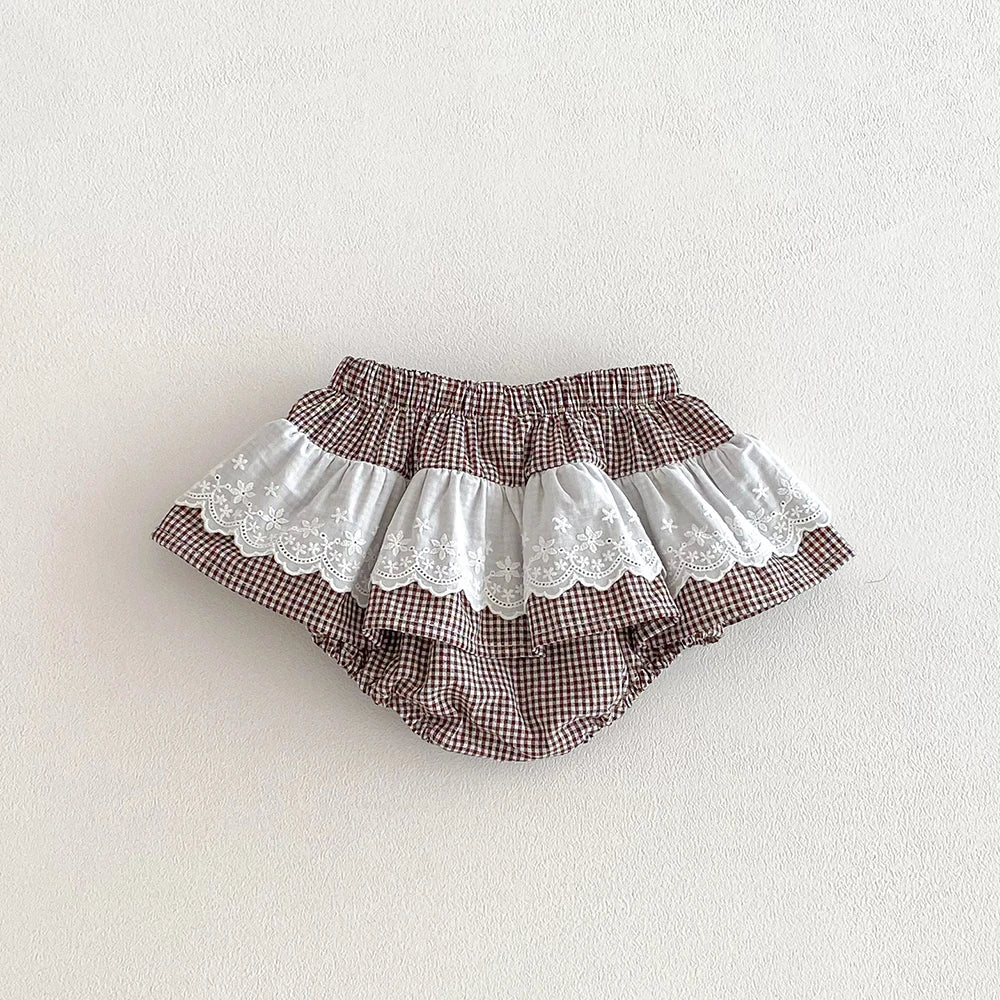 Plaid Ruffles Lace Skirt